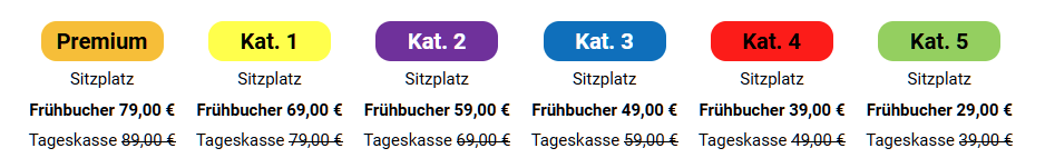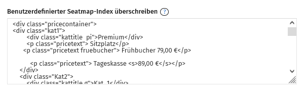 Die Preiskategorien in Deinem Sitzplan kann individuell mittels HTML überschrieben werden. Damit kannst Du den Preisindex individuell gestalten und zusätzliche Informationen ergänzen.