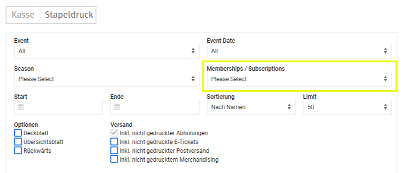 Checkbox deaktiviert = Druck von zusammengefassten Abokarten