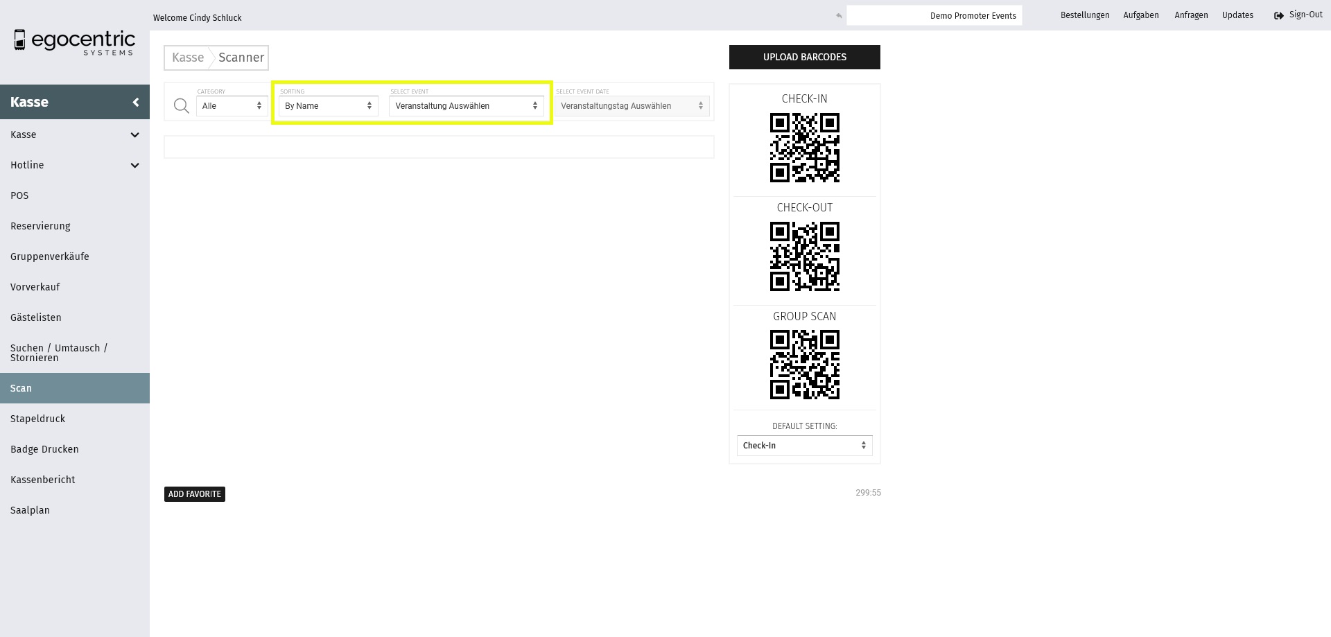 In dem Menü Kasse > Scan findest Du die Maske zum Scannen von Tickets.