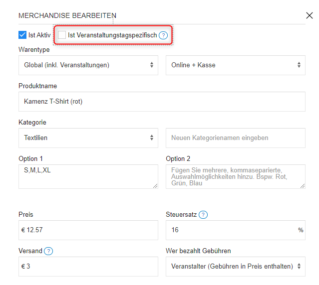 Nachdem du deine Produkte angelegt hast, musst du diese nun den einzelnen Events zuordnen, bei denen du diese den Veranstaltungstagen zuordnen möchtest.
