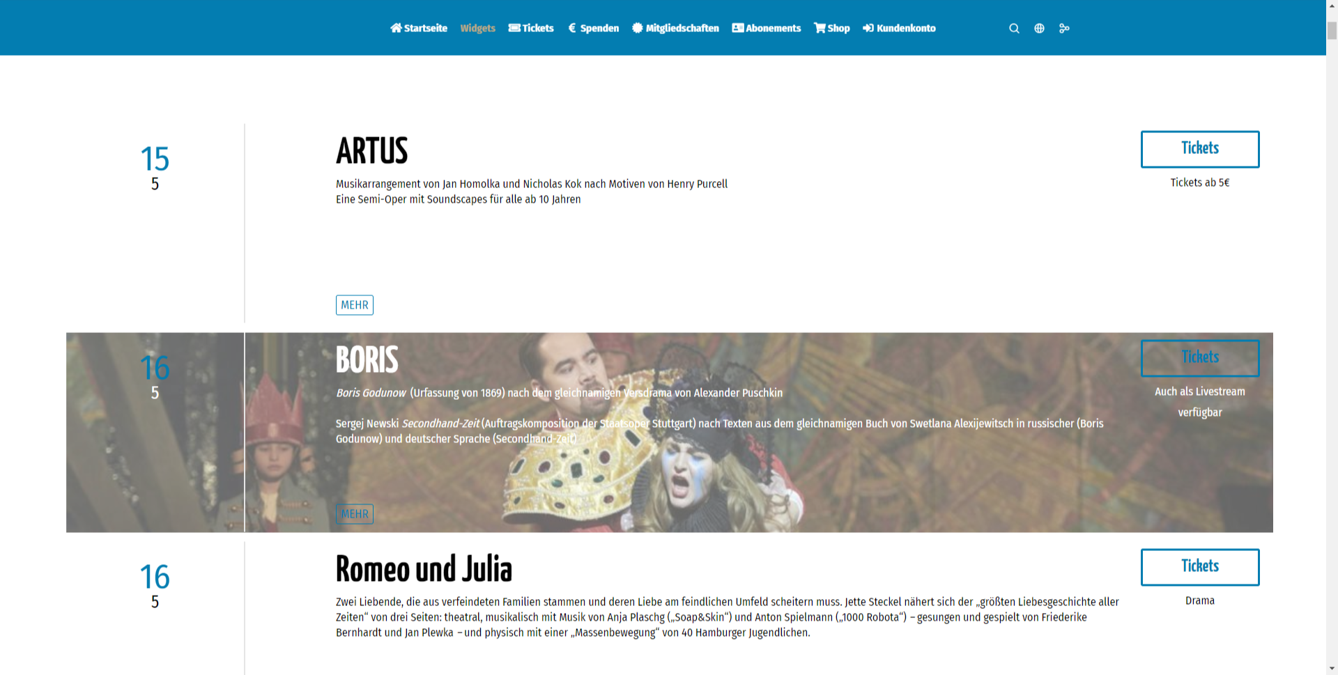 Mit den Widgets kannst du Informationen zu deinen Veranstaltungen in unterschiedlichen Formen auf deine Homepage integrieren.