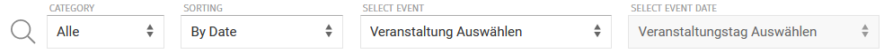 In der Funktion "Kasse" findest Du einen zusätzlichen Filter "Select Event", um noch schneller zu Sortieren und die Information zu finden, die Du brauchst. Du kannst nach Name oder Datum filtern, oder direkt eine Veranstaltung aus Deiner Veranstaltungsliste wählen.
